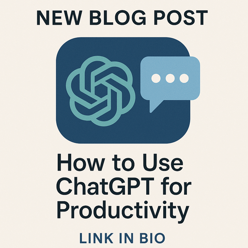 Create a social media poster announcing a new blog post “How to Use ChatGPT for Productivity”. Use a visually appealing graphic related to the blog topic. The text should have the title of the post and a “Link in Bio” call to action.