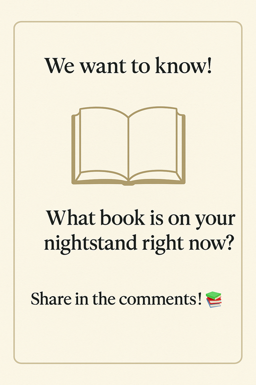 Create a “What are you currently reading?” social media poster to boost engagement. Use a simple, elegant design with an open book graphic. Text: “We want to know! What book is on your nightstand right now? Share in the comments! 📚”
