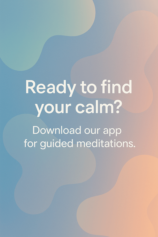 Create a social media poster promoting a mental wellness app. Use abstract, calming shapes and a soothing color gradient. The text should ask a question: “Ready to find your calm? Download our app for guided meditations.”