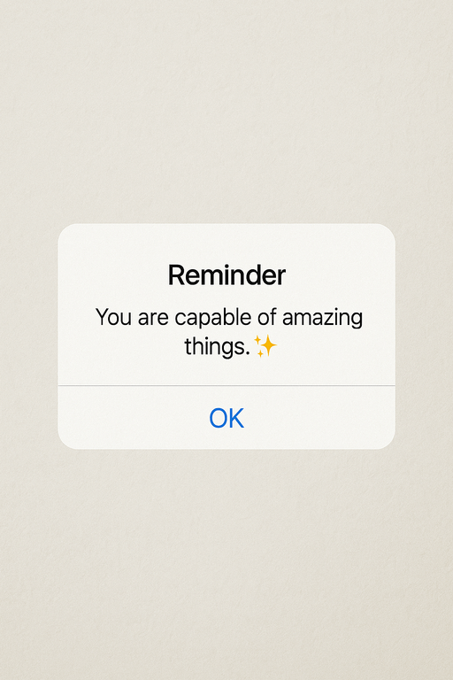 Create a social media poster that looks like a notification alert from a phone. Text: “Reminder: You are capable of amazing things. ✨”