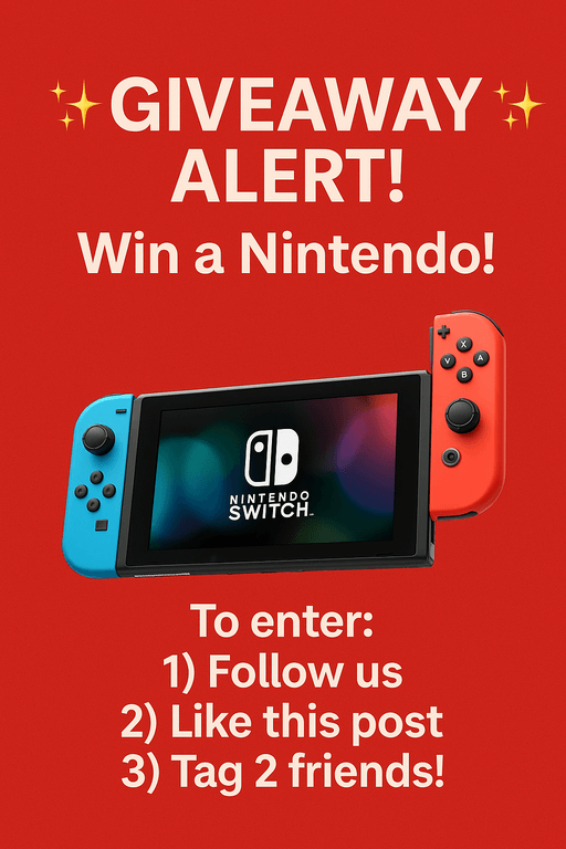 Create an eye-catching giveaway social media poster. Feature a high-quality image of the prize. Text: “✨GIVEAWAY ALERT!✨ Win a [Prize Name]! To enter: 1) Follow us 2) Like this post 3) Tag 2 friends!”