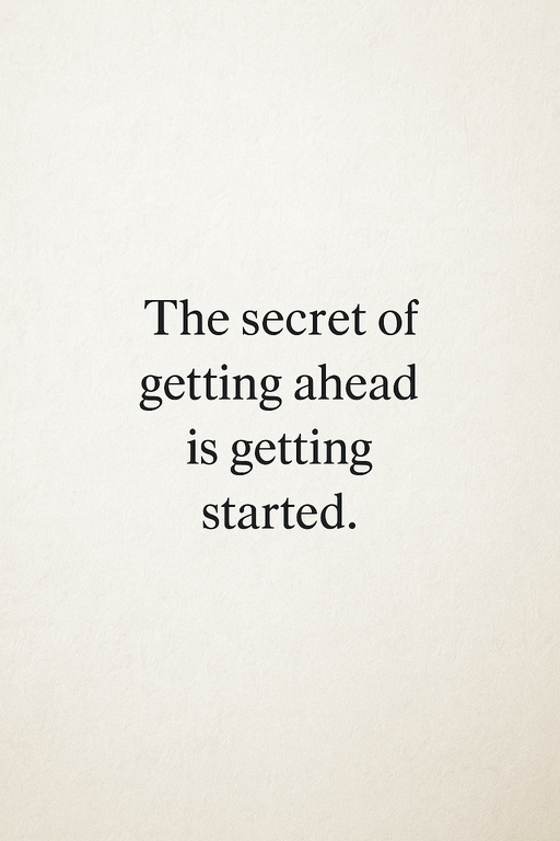 Create a simple, typographic quote poster. Use an elegant font on a beautifully textured background. Text: “The secret of getting ahead is getting started.” in the center.