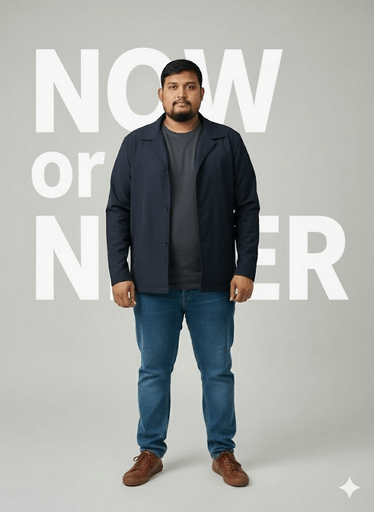Prompt I used: Add a motivational text ‘NOW or NEVER’ to this photo. It should appear behind the person.