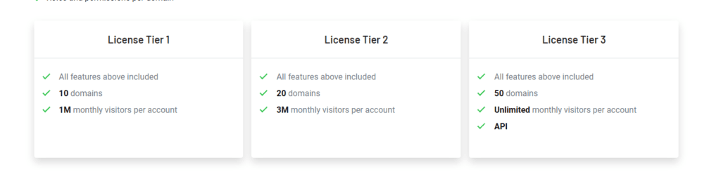 | License Tier | One-Time Purchase | Original Price | Domains | Monthly Visitors |
