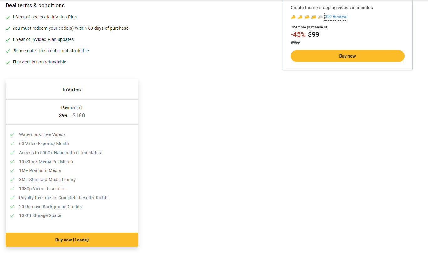 Deal Highlights | – 1 Year of access to InVideo Plan |