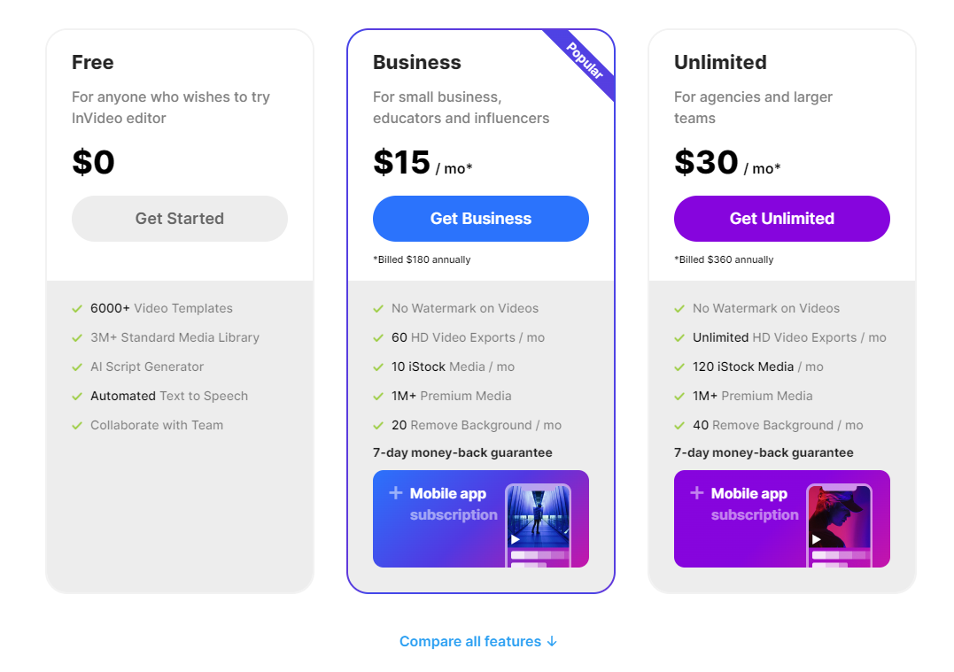 - Customer Support: 24/7 access to InVideo’s customer support for any queries or issues.