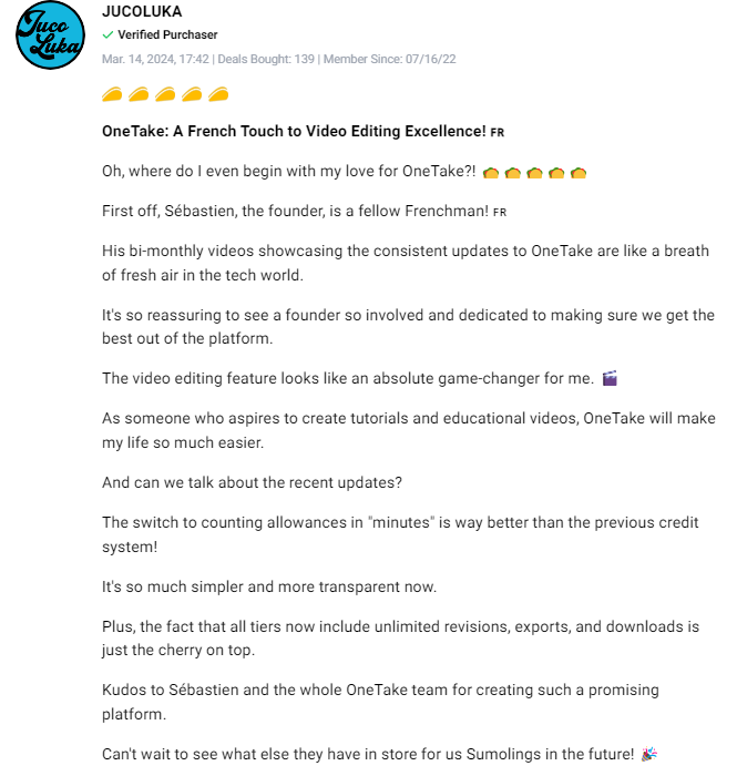User Reviews and Testimonials of OneTake AI Lifetime Deal