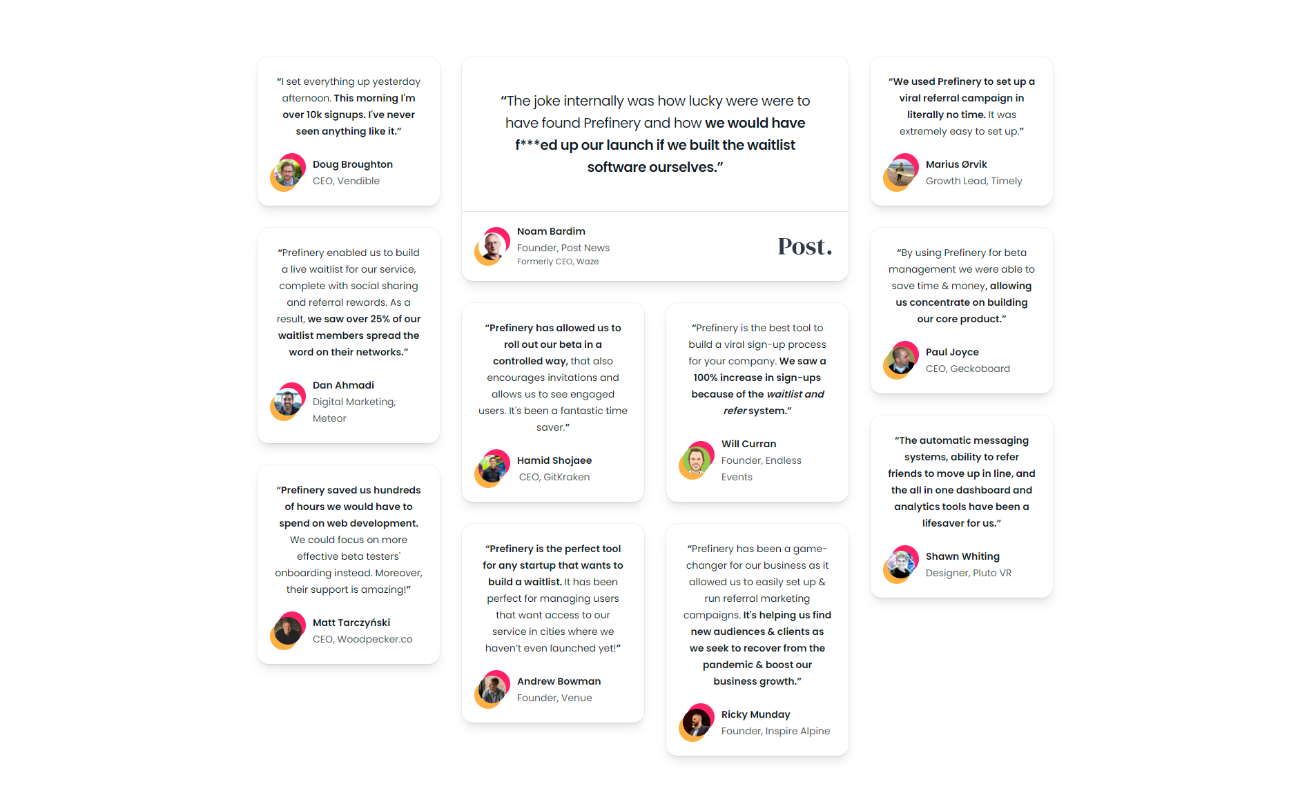 Word-of-mouth is the best form of advertising, and Prefinery supercharges it. I can set up, track, and manage referral programs with ease.