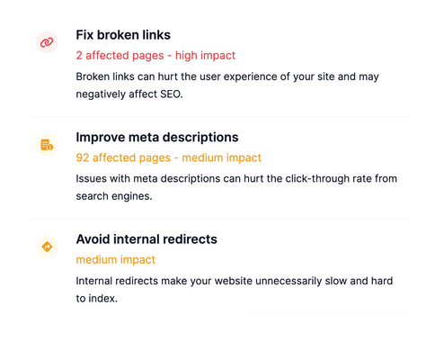 After an audit, SiteGuru gives you an SEO to-do list that you can use. This list breaks down the tasks you need to do to improve your site’s SEO, which makes the improvement process easier to handle.