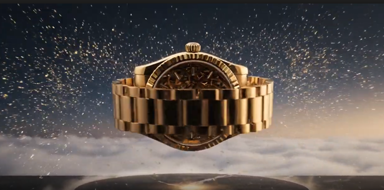 { "description": "Cinematic CGI shot starting with fragmented, glowing components of a luxury