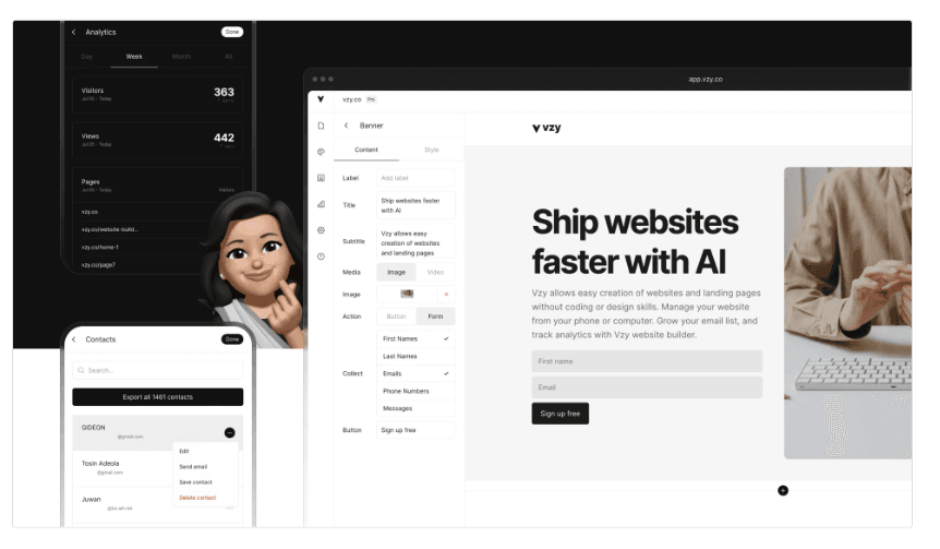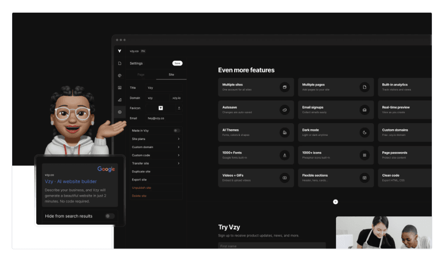Enter Vzy, an AI-powered website builder that goes beyond simply building a site to creating a work of digital art. It’s the tool you didn’t know you were missing, with cutting-edge functionality and an easy-to-use UI.
