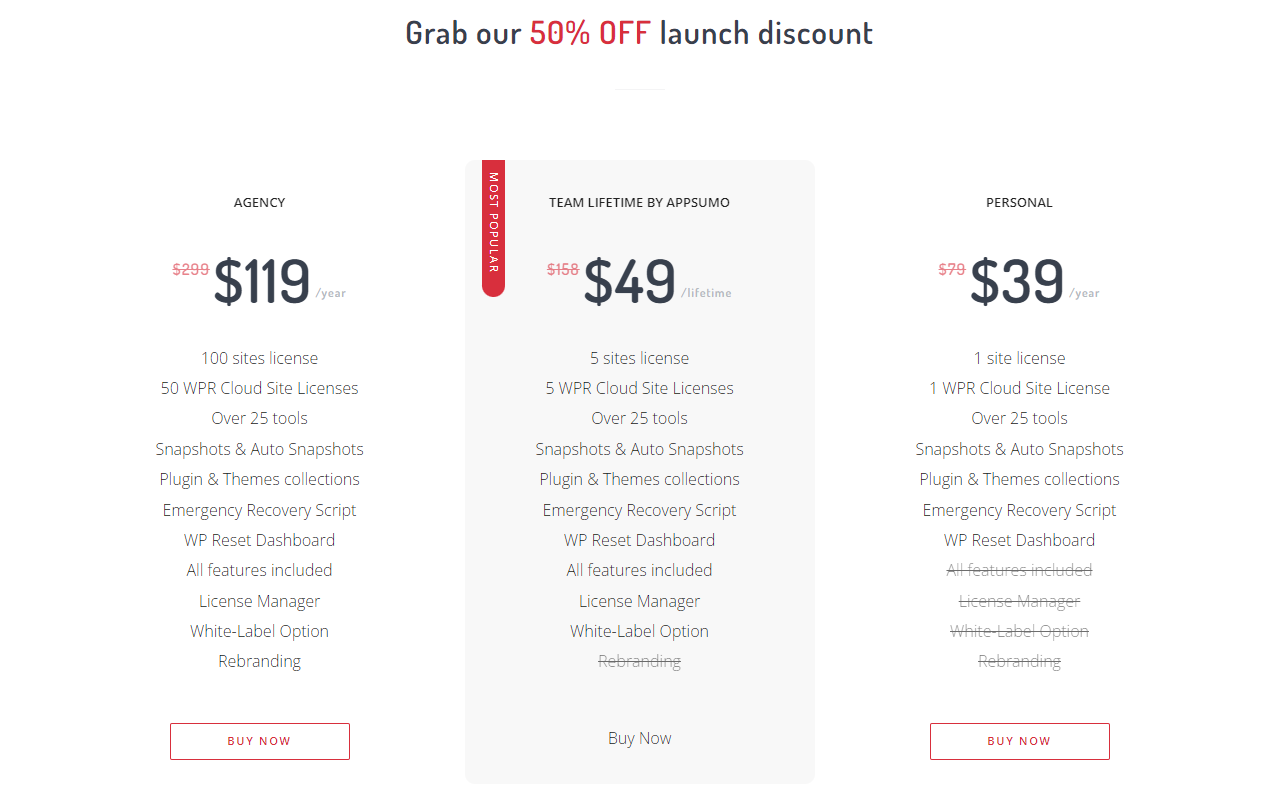 WP Reset AppSumo Pricing: